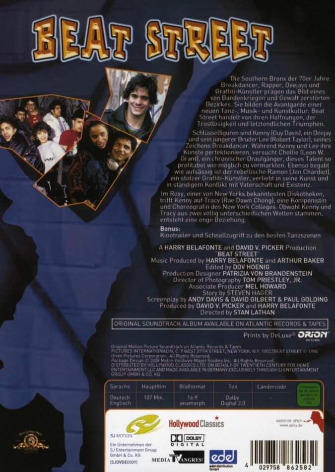 Natürlich sind die 8oer schon lange vorbei und "Beat Street" feiert nun auch schon seinen zwanzigsten Geburtstag. Doch auch wenn die Keyboardsounds, Breaks und Klamotten etwas veraltet und manchmal leicht peinlich wirken, zeigt "Beat Street" sehr authentisch, woher der Rap kommt und aus welchem Grund er entstanden ist. Dies ist kein Musical und auch kein Teeniefilm, auch wenn die spärliche Handlung das scheinbar vermittelt. Hier gibt es keine Spur von Gold und Glitter. Das Umfeld in der Bronx ist schäbig und die Jungs machen in diesen miesen Zeiten das Beste draus; sprayen, rappen, breaken und mixen was das Zeug hält. Für jeden sogenannten "HipHopper" von heute ein Muss, denn die Plattenindustrie hat in diesen Zeiten nichts mehr mit den Roots der 80er gemeinsam, höchstens noch einige Namen, die aber bald verschwinden werden. Dazu gehören Afrika Bambaataa, Doug E Fresh, Melle Mel oder die Rocksteady Crew.