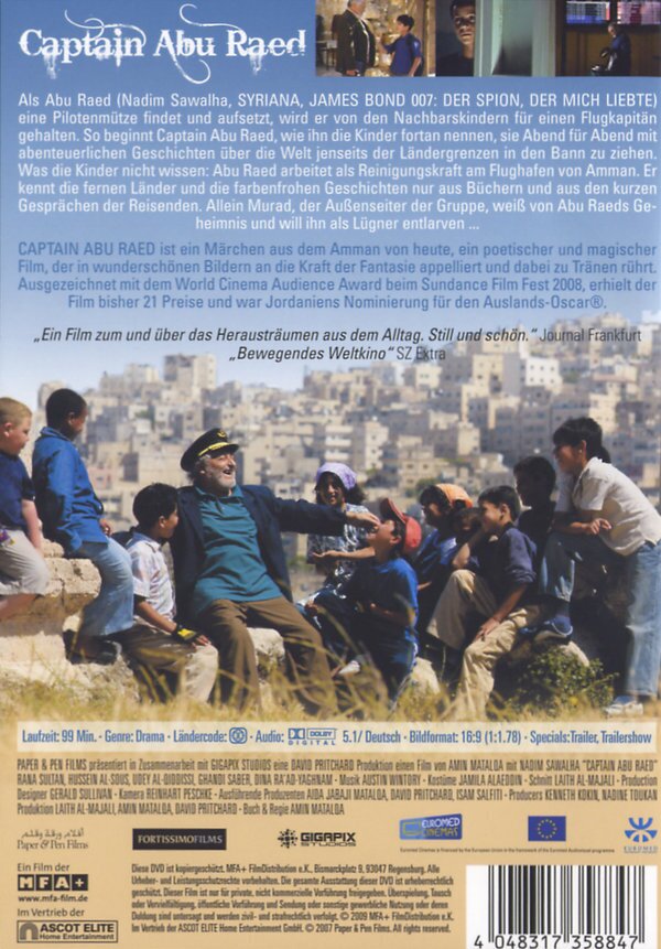 Als Abu Raed eine Pilotenmütze findet und aufsetzt, wird er von den Nachbarskindern für einen Flugkapitän gehalten. So beginnt Captain Abu Raed, wie ihn die Kinder fortan nennen, sie Abend für Abend mit abenteuerlichen Geschichten über die Welt jenseits der Ländergrenzen in den Bann zu ziehen. Was die Kinder nicht wissen: Abu Raed arbeitet als Reinigungskraft am Flughafen von Amman. Er kennt die fernen Länder und die farbenfrohen Geschichten nur aus Büchern und aus den kurzen Gesprächen der Reisenden. Allein Murad, der Aussenseiter der Gruppe, weiss von Abu Raeds Geheimnis und will ihn als Lügner entlarven...