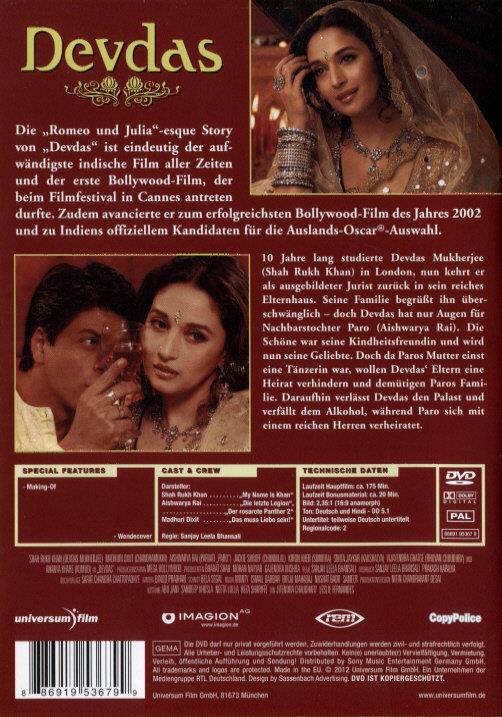 Ich habe diese Film Vor 4 Jahre entdeckt in Cannes und es gibt kein Wort dieder Film zu beschreiben, Romeo und Julietta sind langweillige Babies in Vergleich mit Paro und Devdas. Nie war ein Film so voll Gefühle und ich bedauer das die Europeer solche Filme nicht öfter anschauen, GENUSS PUR. Gruss Zacharias