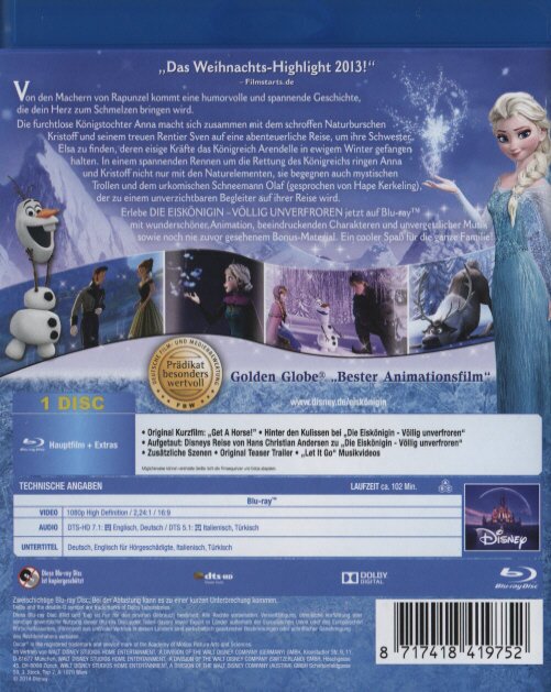 Also erst mal habe ich den sagenhaften Kurzfilm "Get A Horse!" so richtig genossen, denn Mickey ist doch so was wie der Urvater der ganzen Disney-Charaktere. Dann dieser wunderschöne Film der eine geballte Ladung toller Gags mit sich bringt. Vom Schweizer Händler über den Herzog von Pitzbühl bis zur Schesternliebe und dem liebenswürdigen Olaf ist alles vorhanden, was das Herz erfreut.