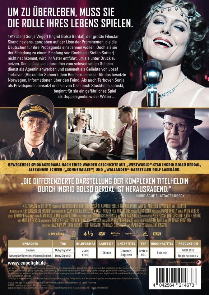 1942 steht Sonja Wigert (Ingrid Bolsø Berdal), der grösste Filmstar Skandinaviens, ganz oben auf der Liste der Prominenten, die die Deutschen für ihre Propaganda einspannen wollen. Doch als sie der Einladung zu einem Empfang von Goebbels (Stefan Sattler) nicht nachkommt, wird ihr Vater entführt, um sie unter Druck zu setzen. Sonja lässt sich daraufhin vom schwedischen Geheimdienst als Agentin anwerben und sammelt als Geliebte von Josef Terboven (Alexander Scheer), dem Reichskommissar für das besetzte Norwegen, Informationen über den Feind. Als auch Terboven Sonja als Privatspionin einsetzt und sie von Oslo nach Stockholm schickt, beginnt für sie ein gefährliches Spiel als Doppelagentin wider Willen ...