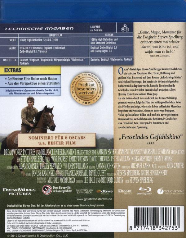 Der Film hat zwar zig Klischees, zig unlogische Zusammenhänge, zig Zufälle und ein Happy End und sehr viel Kitsch. Aber mal ehrlich, genau das gehört zu diesen Filmen und wer hat schon was anderes erwartet? Jeder andere ist selber Schuld.. Die Arbeit mit der Kamera ist noch altmodisch und typisch Spielberg. Tolle Ladschaftsbilder, tolle Kriegsbilder. Echt toll nachgestellter 1. Weltkrieg. Langer Film mit 2h13min ohne Abspann. Der Film würde von mir 8 von 10 Punkte erhalten (auch Bild und Ton sind einwandfrei), bei den Extras hat man wie so oft gespart und wäre mehr möglich gewesen als ein klitzekleines Making-of (Dessign des Films). Dauer: 06.14.