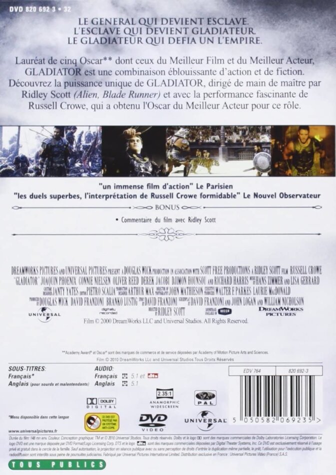 Un Chef-d'oeuvre. Russell Crowe est excellent. Un film d'une beauté exceptionnelle et des acteurs talentueux. MAXIMUS!! MAXIMUS!!