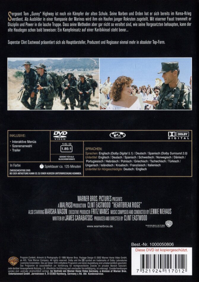 Langweilig? Ganz bestimmt nicht, denn es ist immer etwas los, sei es in Highways Truppe, im Ausbildungs-Camp, in der Beziehung mit seiner Ex oder auf dem Schlachtfeld Grenada. Die Sprüche am Laufmeter sind einfach hammermässig. Dazu noch ein historischer Hintergrund. Was will man als Eastwood-Fan noch mehr?