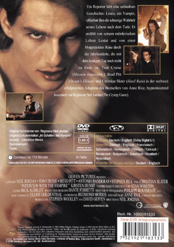 ein toller Film. das Spiel zwischen Pitt und Cruise super. Die hier noch sehr junge Kirsten Dunst genial. Die Erzählform des Films überzeugt. Für mich gehört dieser Movie garantiert zu den 100 Besten. Ein Film zum immer wieder reinziehen...