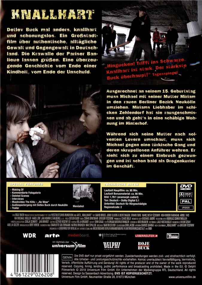 Im Bonus-Teil gibt Regisseur Detlev Buck freimütig zu, dass der Film an der Kasse nicht so erfolgreich war. Es wird einem auch schnell klar weshalb: es gibt hier keine Helden, eigentlich nur Verlierer. Sogar der Berliner Stadtteil Neukölln wird schlichtweg als perspektivloser Ort dargestellt. Kurzum: hier fühlt sich niemand wohl, geschweige denn möchte sich mit irgenwem oder was identifizieren. Trotzdem, wenn es die Absicht war zu zeigen, wie schnell ein Jugedlicher ungewollt in eine ausweglos scheinende Situation geraten kann, bringt einem der Film zum Nachdenken. Deshalb finde ich ihn unbedingt sehenswert. Und schliesslich als absolutes Highlight: Hauptdarsteller David Kross spielt mit soviel erfrischender Unschuld, das es einem schon sehr nahe geht. Diesem Nachwuchs-Talent muss man einfach eine grosse Zukunft wünschen, wenn er es denn will.