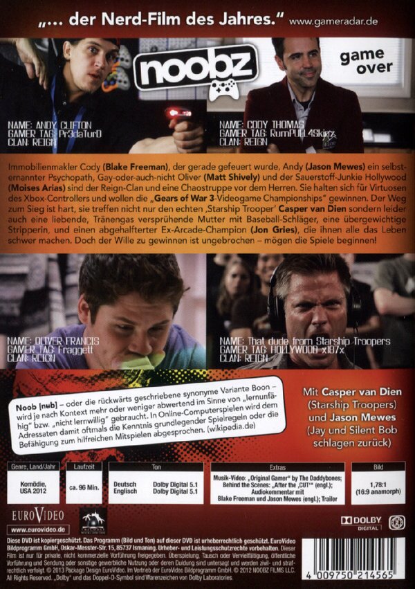 Was aber die Typen vom "Reign"-Clan dort zu suchen haben, weiss keiner. Die Jungs sind so fertig mit der Welt, dass sie nicht mal den Team-Namen auf ihren Shirts richtig schreiben können: Immobilienmakler Cody wurde gerade gefeuert und spielt nun den ganzen Tag XBox. Seiner Freundin reicht es, sie schickt ihn zum Teufel. Games-Verkäufer Andy ist selbsternannter Soziopath, der seine Onlinefreundin Rickie abgöttisch liebt, obwohl er sie noch nie gesehen hat. Oliver weiss noch nicht, ob er sich eher für Männlein oder Weiblein interessiert, und Hollywood gibt sich online als "Starship Troopers"-Darsteller Casper Van Dien aus, ist in Wirklichkeit aber ein asthmakrankes Handtuch, dessen bester Kumpel seine Sauerstoffflasche ist. Diese Nerds wollen nun L.A. aufmischen. Nichts und niemand kann diese Chaos-Truppe stoppen, weder eine liebende, Tränengas versprühende Mutter mit Baseball-Schläger, noch eine übergewichtige Stripperin, kein abgehalfterter Ex-Arcade-Champion der 80er-Jahre und erst recht nicht "Starship Trooper"-Casper Van Dien höchstpersönlich... Möchten Sie mehr wissen?