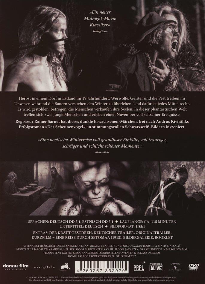 Herbst in einem Dorf in Estland im 19. Jahrhundert. Werwölfe, Geister und die Pest treiben ihr Unwesen, während die Bauern versuchen, den Winter zu überleben. Und dafür ist jedes Mittel recht. Es wird gestohlen, betrogen, die Menschen verkaufen ihre Seelen. In dieser sonderbaren Welt treffen sich zwei junge Menschen und erleben einen November voll seltsamer Ereignisse. Regisseur Rainer Sarnet hat dieses dunkle Erwachsenen-Märchen frei nach Andrus Kivirähks Erfolgsroman Der Scheunenvogel in stimmungsvollen Schwarzweiss-Bildern inszeniert.