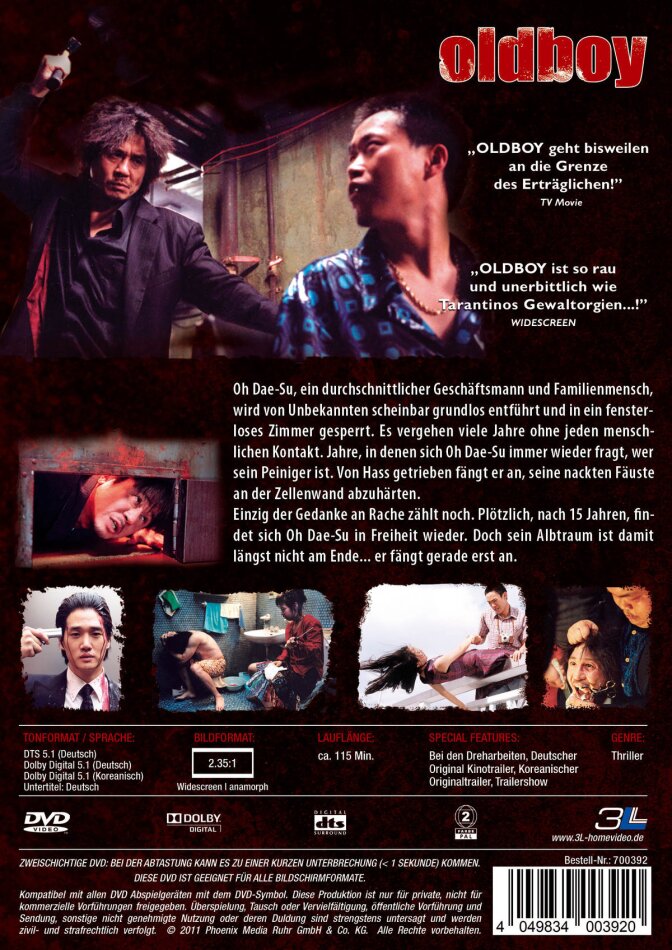 oldboy ist ein ausgezeichneter film.. viele unerwartete wendungen und eine geniale story stimmen mich dazu diesen film zu meinen top 5 zu zählen. kauf absolut empfehlenswert!!