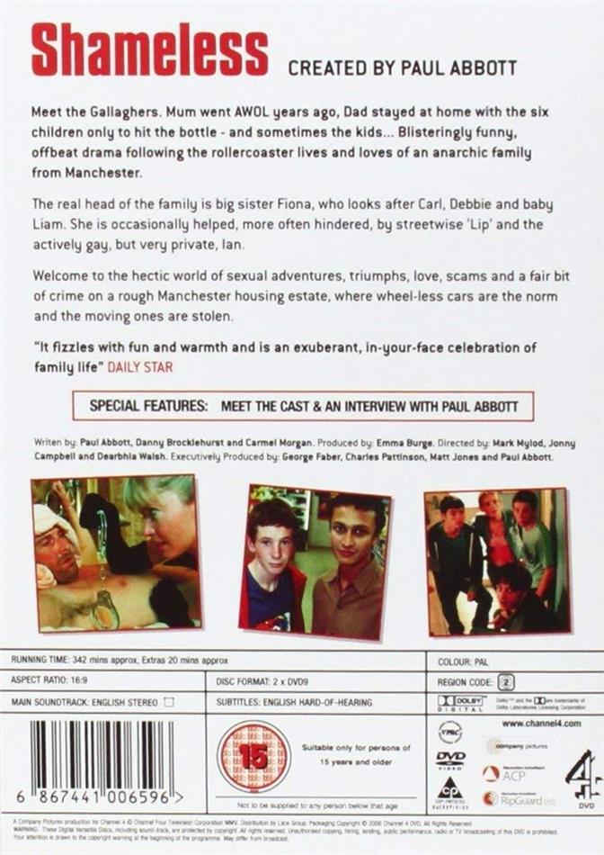 The first series of offbeat TV drama Shameless promises plenty of laughs from Manchester`s most dysfunctional family (the Gallaghers) and their neighbours (the Maguires) as they go about their very anarchic lives. Join Frank and his six kids, for whom there is never a dull moment on the Chatsworth housing estate, where wheel-less cars are the norm and the moving ones are stolen.