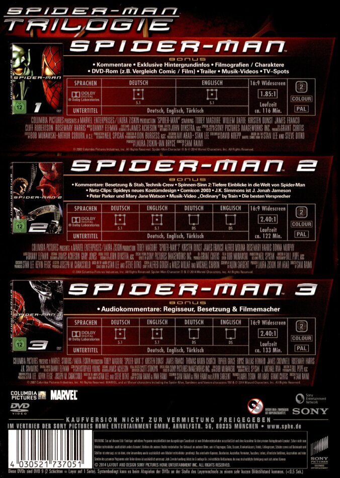 | Originaltitel | Spider-Man / Spider-Man 2 / Spider-Man 3 |