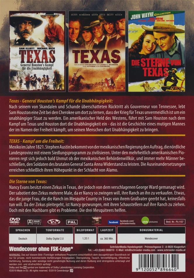 3 spannende und schöne Westerfilme mit Texas-Bezug auf 2 DVDs, starbesetzt mit ua. John Wayne und Sam Elliot!