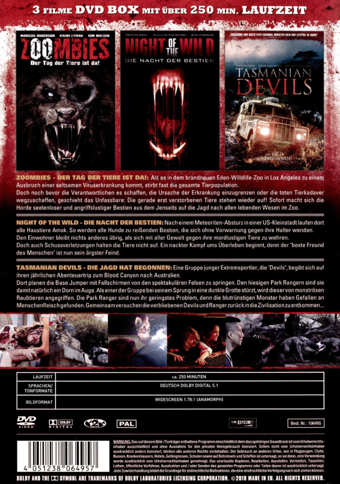 Filmliste Zoombies - Der Tag der Tiere ist da!, Night of the Wild - Die Nacht der Bestien, Tasmanian Devils - Die Jagd hat begonnen