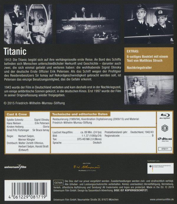 Die Titanic wird von gewinnsüchtigen anglo-amerikanischen Spekulanten in den Untergang getrieben, nur der - erfundene - deutsche Offizier versucht die Katastrophe zu vermeiden ...