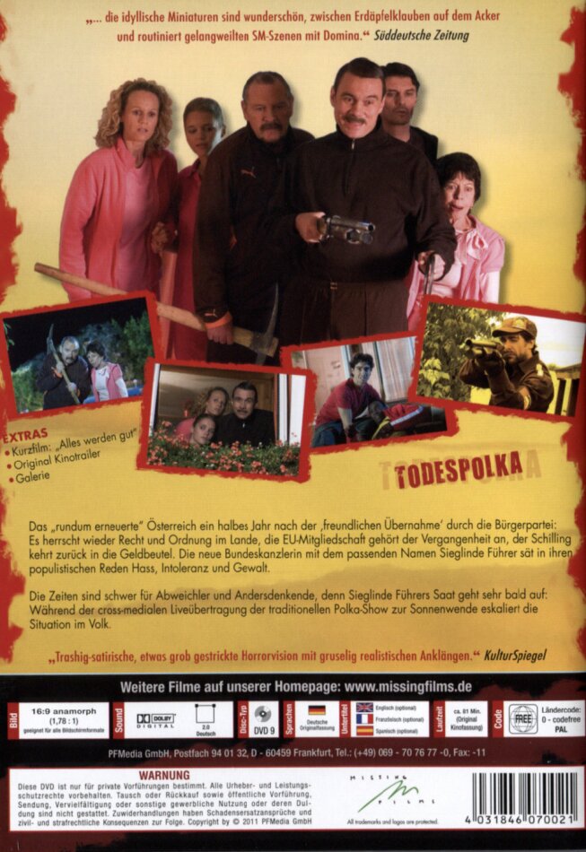 Österreich hat endlich eine Bundeskanzlerin - und was für eine! Dr. Sieglinde Führer regiert mit eiserner Hand. Ein halbes Jahr nach der "freundlichen Übernahme" durch die Bürgerpartei: Austritt aus der EU. "Law and Order" regiert das Land. Die beim Volk beliebte populistische Frau Bundeskanzler Dr. Sieglinde Führer sät Hass, Intoleranz und Gewalt. Nicht nur für 'Abweichler' brechen schwere Zeiten an. Zur Sonnenwende, während im Fernsehen unter Sieglindes Beisein die grosse Polka-Show läuft, geht die Saat auf. Inmitten von Vorurteilen, Brutalität und Spiessbürgertum sind zwei junge Medizinstudenten, ein geistig Behinderter und eine Prostituierte die letzten "Anständigen".