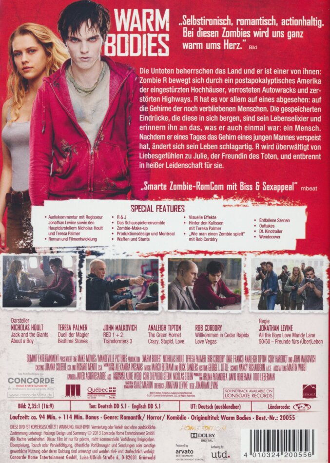 Die Idee, aus der Sicht eines Zombies zu erzählen ist genial! Die Handlung braucht zwar manchmal etwas, aber dafür haben sie Wert auf die Beziehung gelegt. Kommt auch gut rüber. Und gute schauspielerische Leistungen!