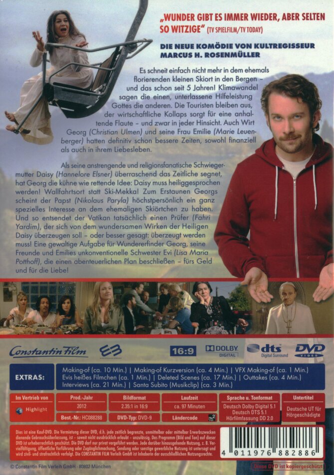 Im schönen Skiort Haunzenberg ist dank anhaltender Schneeflaute ziemlich tote Hose. Das gilt leider auch für Georgs Beziehung mit Emilie, erst recht nachdem er beim Versuch Emilies Leidenschaft zu entfachen irgendwie - zwar nur bei bemühter Interpretation, aber dann quasi indirekt schon - den Tod seiner Schwiegermutter verursacht hat, also zumindest schuld daran ist, dass ein Holzkreuz im Nebenzimmer von der Wand stürzt, mit tragischerweise tödlichem Ausgang für Daisy, Emilies sehr gläubige Mutter. Gott habe sie selig... Für die einen mag es nach einer Schnapsidee klingen, für die anderen, und das sind insbesondere Georg und seine Stammtischfreunde, klingt es eher nach einem genialen Plan, um Liebe und Dorf zu retten - jedenfalls macht sich Georg auf, um Daisy heilig sprechen zu lassen. Als dann tatsächlich ein Pater vom Vatikan gesandt wird, um das Wirken der 'Heiligen Daisy' zu prüfen, kommen einige herrliche Wunder auf Haunzenberg zu...