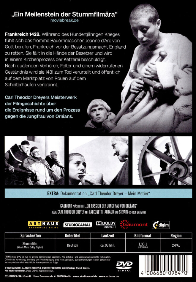 der beste film aller zeiten! maria falconetti verkörpert jeanne d'arc mit einer unglaublichen intensität. fantastisch auch die kamera-arbeit und die close-ups... der dänische regisseur carl theodor dreyer schuf mit "la passion de jeanne d?arc" einen meilenstein der filmgeschichte.