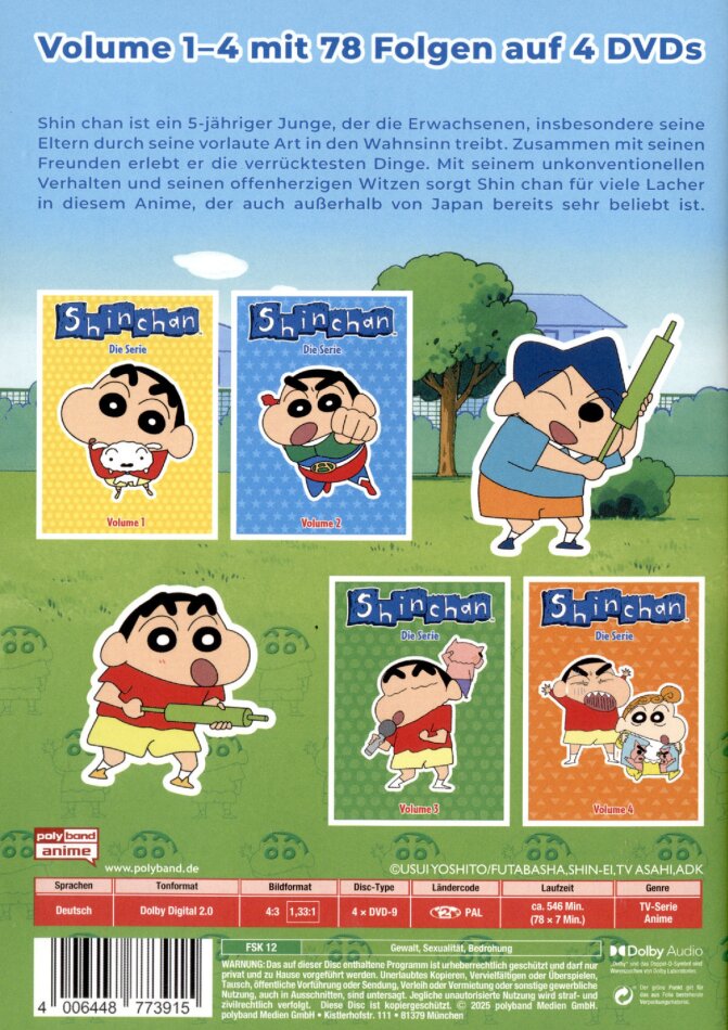 Shin chan ist ein 5-jähriger Junge, der die Erwachsenen, insbesondere seine Eltern durch seine vorlaute Art in den Wahnsinn treibt. Zusammen mit seinen Freunden erlebt er die verrücktesten Dinge. Mit seinem unkonventionellen Verhalten und seinen offenherzigen Witzen sorgt Shin chan für viele Lacher in diesem Anime, der auch ausserhalb von Japan bereits sehr beliebt ist.