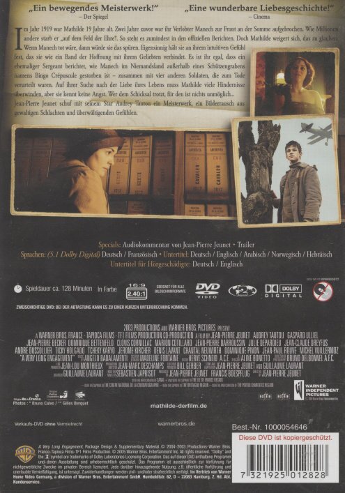 Nebst der jeunet üblichen visualität hat der Film keinen drive. Jeunet konzentriert sich nur auf die Recherche und Suche der Frau. Doch das ist zu wenig für eine gute Geschichte. Man erfährt nie warum sie ihn so liebt. Da wird nichts aufgebaut die den Zuschauer hineinzieht. Die Suche selber ist dementsprechend langweillig und bedeutungslos. Nebst guten Bilder bietet der film leider sehr wenig. Desshalb auch kein Erfolg an den Kinos und zerriss bei den Kritiken. Schade.