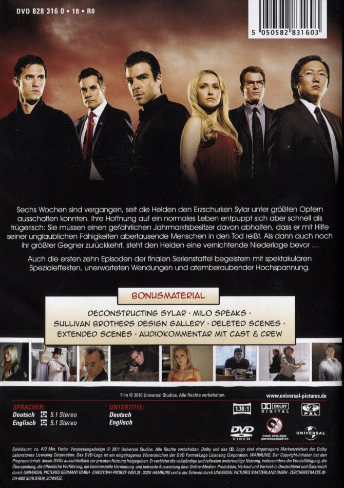| Schauspieler | Hayden Panettiere, Ali Larter, Adrian Pasdar, Milo Ventimiglia, Greg Grunberg, Santiago Cabrera, Sendhil Ramamurthy, Masi Oka, Zachary Quinto |