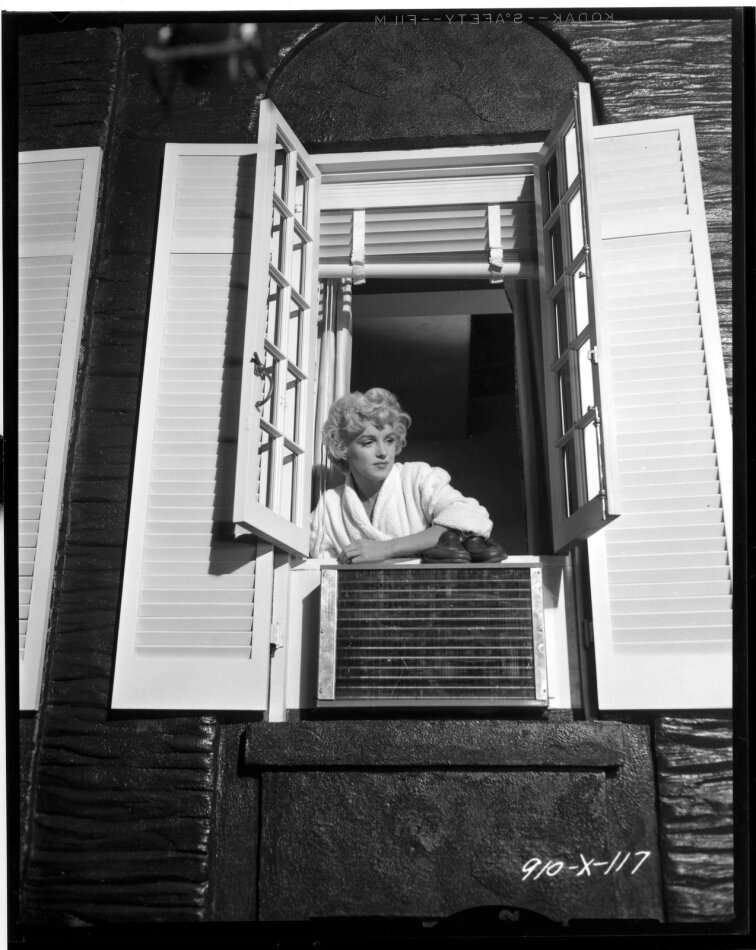 On la vit à travers un américain moyen auquel le spectateur (masculin !) s'identifie (pour notre plus grand plaisir !) qui cherche à séduire sa voisine du dessus jouée par une Marilyn à l'apogée de sa beauté et de sa gloire.