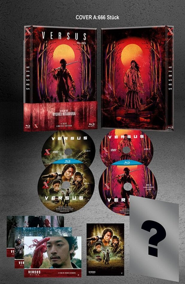 Mir gefällt VERSUS wirklich gut. Man könnte ihn fast wie eine Mischung von SHOGUN ASSASSIN, BLADE, ZOMBIE und THE MATRIX beschreiben. Klar, die Story ist nicht gerade toll... Der Soundtrack, die Kampfszenen und einige der Gore-Effekte sind dafür umso besser! Kauft jedoch unbedingt eine der beiden anderen US-Versionen. Fans und Sammler interessieren sich für die (teure) «Tin Box».