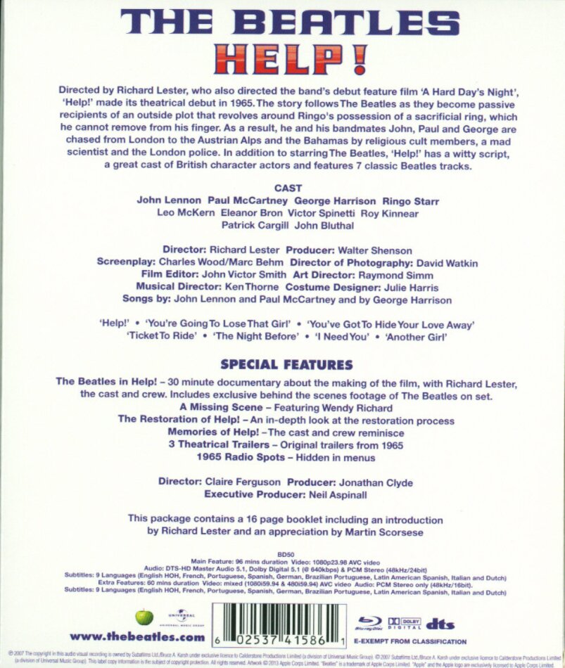- "The Beatles in Help!" - eine 30minütige Dokumentation über das Making-Of des Films, mit Richard Lester, der Cast und der Crew, mit exklusiver Footage vom Set.