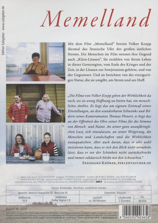 Das Memelland - oder Klein-Litauen, wie es die Bewohner nennen - liegt im heutigen Litauen malerisch zwischen Meer und Memelufer gelegen. Es ist eine raue Landschaft mit viel kaum berührter Natur und entsprechenden Schutzgebieten und hat eine bewegte Geschichte hinter sich. Die Bewohner, teils litauisch, teils deutsch erlebten Weltkrieg, Vertreibung und Kalter Krieg. Drei ältere, deutschstämmige Schwestern erzählen aus ihrer bewegten Biografie. Aber auch junge Litauer kommen zu Wort.