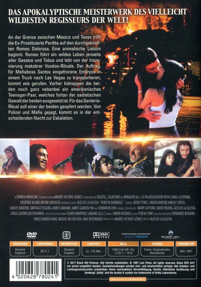 Der Film hatte ein Budget von immerhin etwa 8 Millionen US-Dollar. Für EL DIA DE LA BESTIA waren es zum Beispiel nur ca. 2 Millionen. Egal. PERDITA DURANGO ist weniger «abgefahren» – und meiner Meinung nach auch nicht ganz so gut – wie ACCION MUTANTE (AKTION MUTANTE), aber dennoch wirklich sehenswert!