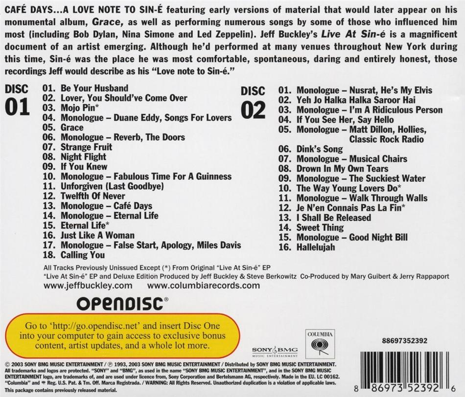 Mit ungeheuren Emotionen singt hier Jeff Buckley auf seine ausgesprochen individuelle Art völlig andere Versionen von vier Titeln, die bereits auf Studio-Aufnahmen erschienen sind, es lohnt sich jedenfalls, diese Live-CD anzuhören und sich berühren zu lassen.