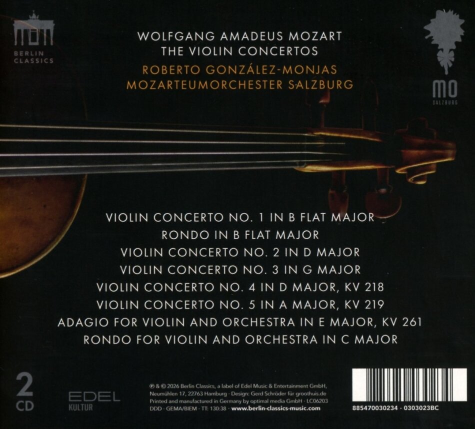 This is the last release of a six-release album series presenting all violin concertos by Mozart. Together with the the Spanish violinist and conductor Robert Gonzales-Monjas, who is the chief conductor of the Mozarteumorchester Salzburg, the orchestra proves once again it's unrivaled position as interpreters of the Mozart stylistic. The album will be released during the Salzburg Mozartwoche in January 2026