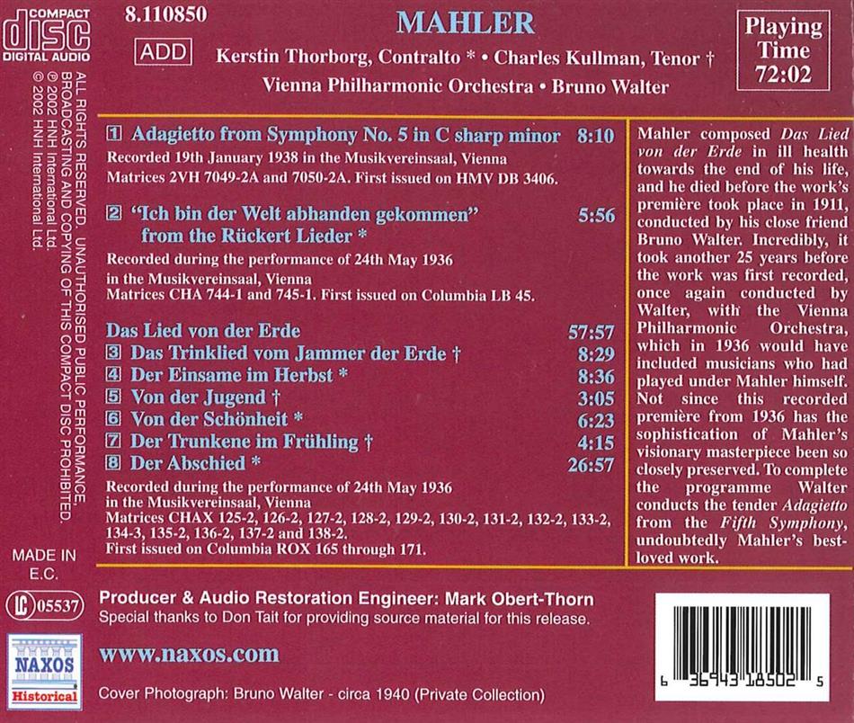 | Komponisten | Gustav Mahler (1860-1911) |