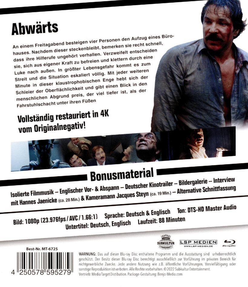 Das ganze spielt sich nur im Lift und Liftschacht ab.Sehenswehrter Deutscher Film