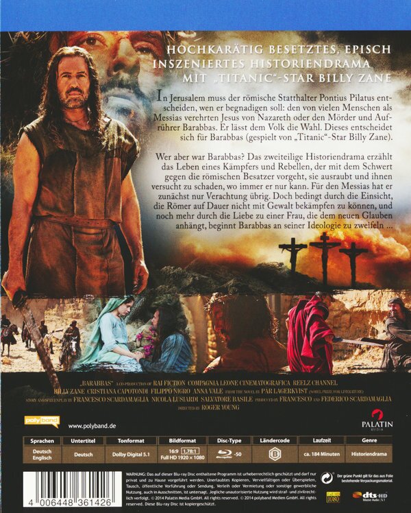 m Judäa des frühen ersten Jahrtausends ächzt die Bevölkerung unter der Knute und Steuerlast der Römer. Während manche, wie etwa der gerade rechte angesagte und angeblich wundertätige Prophet Jesus von Nezareth, Frieden predigen, haben andere, wie der berüchtigte Räuber Barabbas, keine Lust, die andere Wange hinzuhalten. Mit seiner Bande verbreitet Barabbas Terror im ganzen Land und schreckt nicht einmal davor zurück, römische Steuereintreiber zu ermorden. Das bringt ihn auf direkten Kollisionskurs mit den Römern.