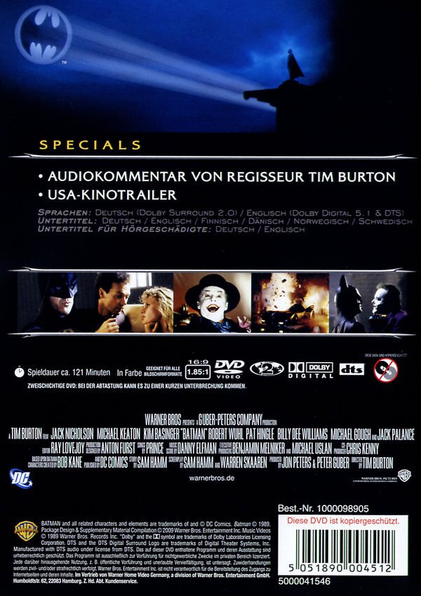 warner veröffentlicht am 4.10.05 alle vier batman streifen als special editions bei teil 1 gibts folgende extras: Audiokommentar von Regisseur Tim Burton,