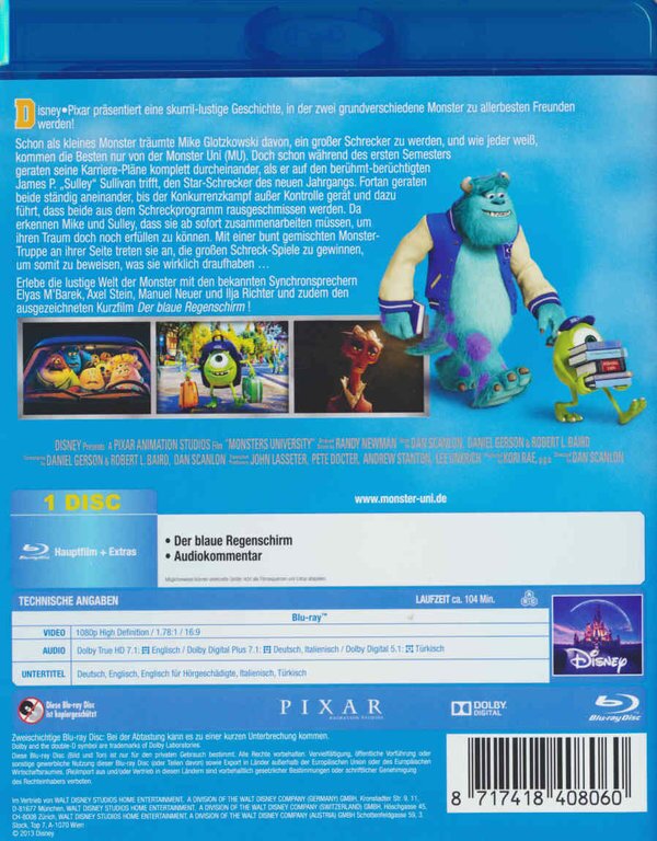 Der Film selber ist sicherlich nicht der Beste aus dem Hause Pixar. Trotzdem macht er Spass, nicht zuletzt deshalb weil die Animation wieder mal 1a ist. -