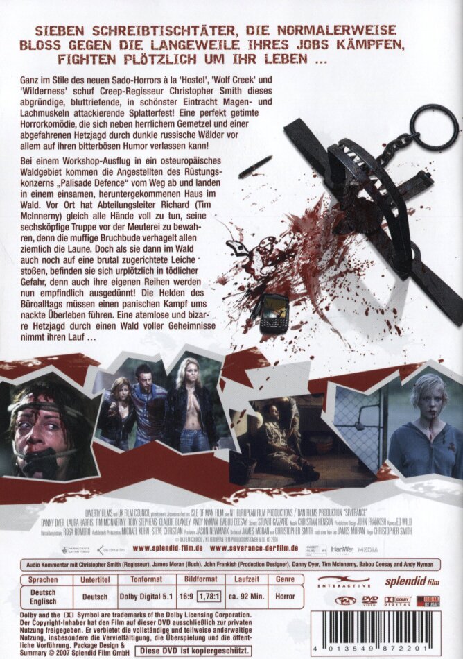 Um es gleich vorweg zu nehmen, ich find den Film grundsätzlich sehr gelungen. Coole, ganz verschiedene Charaktere und auch die Story ist ganz okay. Nur lassen die echten Lacher ziemlich lange auf sich warten. Ich bekam zuweilen fast das Gefühl, einen "normalen" Horror-Streifen zu schauen. Aber die witzigen Momente kamen dann doch auch noch und alles in allem ist "Severance" ein sehr unterhaltsamer Film, den es lohnt, sich anzuschauen.