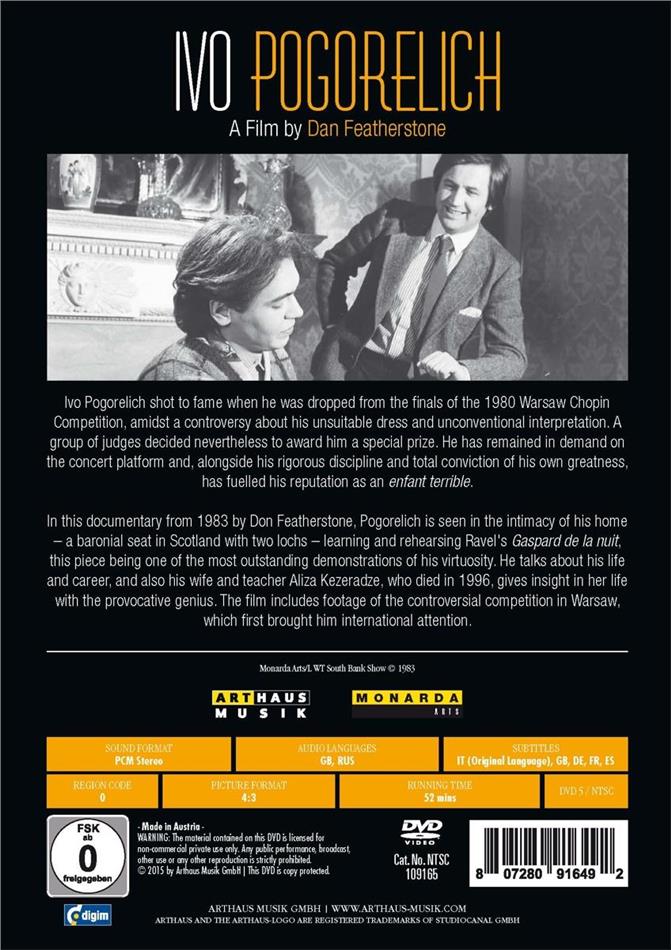 Filmed in 1983, the pianist Ivo Pogorelich is the subject of this long out of print profile filmed in his home, at rehearsal and in interviews that provide insight to this unconventional pianist whose behavior scandalized Warsaw's Chopin competition in 1980 when he was disqualified for inappropriate dress and interpretations, but awarded a 'special prize' afterwards. The resulting hubbub resulted in Pogorelich being elevated to status of misunderstood outsider both in some of the public's eye and more critically in his eyes. Filmed when his star was ascending and erupting with that particular bravado only possible when young, a fascinating look at a moment in time for the undeniably virtuosic Pogorelich whose presence in the public eye seems more akin to that of a massive shooting star: hot, bright and fast.