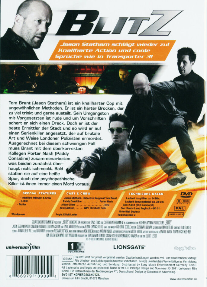 Typischer Statham Film. Begreife Leute nicht die immer noch schauen, obwohl sie nur ein Film gut finden. Crank 1 war gut, Crank 2 nur noch krank, Death Race zum Beispiel war wieder ein sackstarker, wie auch die Transporter Filme! Der hier ist irgendwo dazwischen. Aber immer noch unterhaltsam. Schraubt doch die Erwartungen runter, nicht jeder Statham Film kracht von A-Z. Extras: sind fast 1 Stunde, obwohl es nach viel weniger aussieht, ein 13 minütiges B-Roll-Making of, 37 Minuten Interview, 2 Min. Film trailer, sowie 5 weitere Trailer