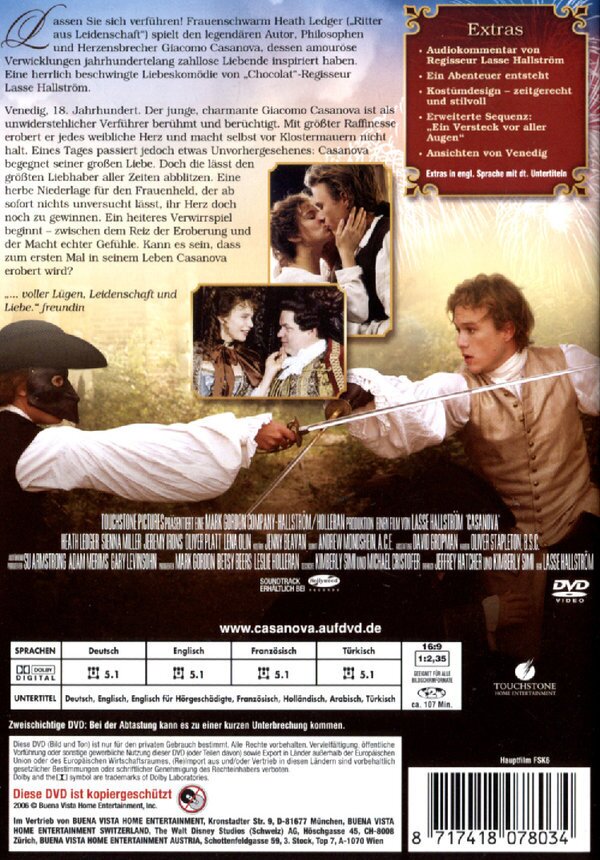 Nicht nur wegen H. Ledger wird dieser Film sicherlich, in den Jahren die noch kommen werden, ein Klassiker der leicht-romantischen Kostümkomödien werden. Sondern auch wegen der weiteren cast (besonder O.Djalili oder auch J. Irons) der aufwendigen Kostüme und der Inszenierung in Venedig. Ebenso das Drehbuch (in O-Ton) hat manchmal einen subversiven Witz, der ein wenig an Monty Pythons erinnert. Fazit: Im O-Ton überzeugt der Film durchweg. Die Inszenierung hat sicher leichte Parallelen zu Richard Lester's "Drei Musketiere" und ein wenig von Monty Pythons' Blasphemie.