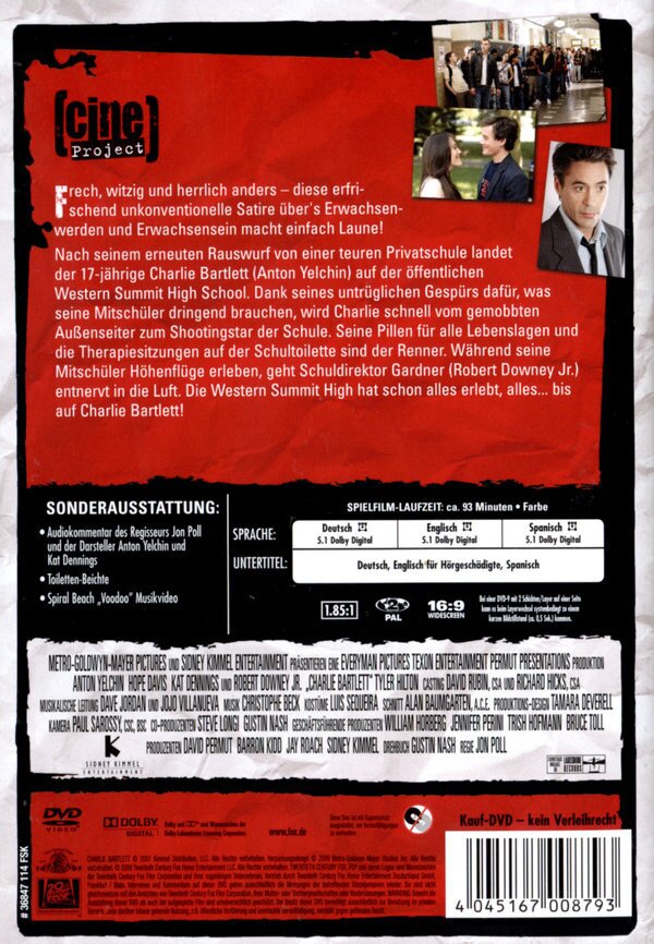 Obwohl diese Produktion als Zielpublikum Teenager im Visier hat, kann er ohne weiteres auch von Twens, Bivies oder Golden Oldies angesehen werden. Denn, wir alle waren einmal in der Schule. Zwar meist nicht so wie in dieser Geschichte, aber etliche Probleme sind immer wieder dieselben. Nur die Umstände ändern sich. Fazit: A. Yelchin & K. Dennings sind Volltreffer in der Besetzung. R. Downey schliesst sich leistungsmässig dem Duett nahtlos an. Ein Film mit Niveau und Unterhaltungswert.