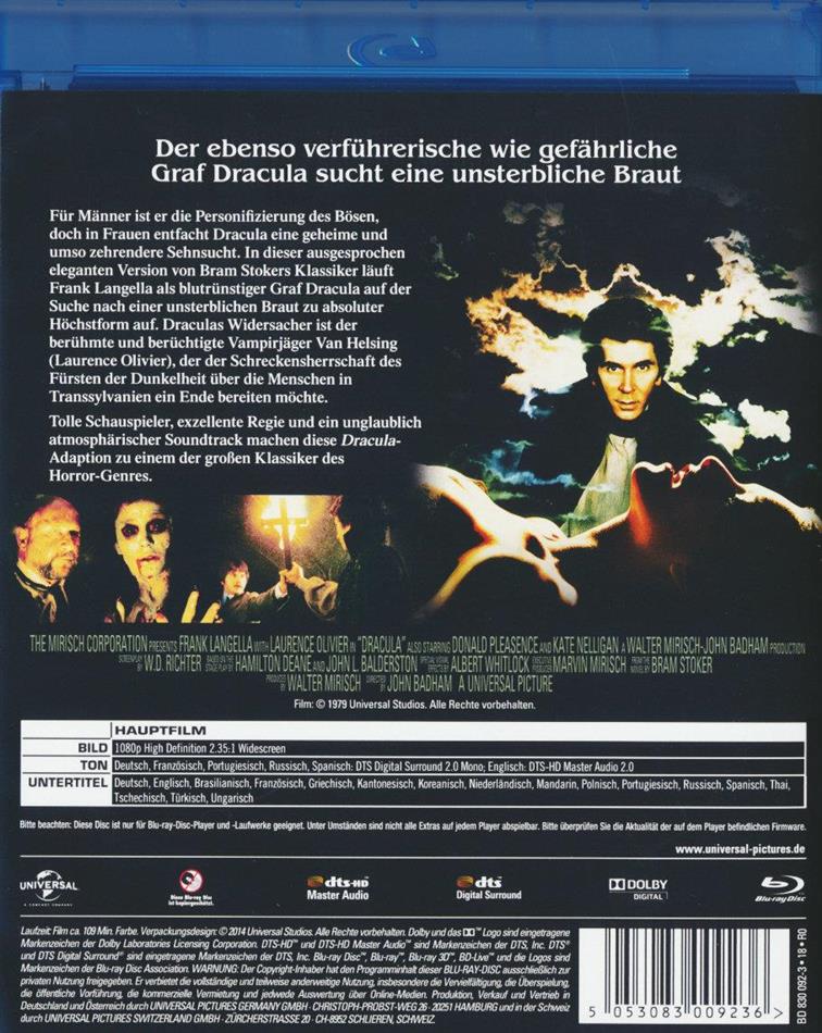 Graf Dracula (F. Langella) reist nach England, wo er ein verfallenes Schloss bezieht. Dort lernt er die kränkliche Mina (J. Francis), ihre Freundin Lucy (K. Nelligan) sowie Lucys Vater Dr. Seward (D. Pleasence) kennen, der seinen neuen Nachbar Graf Dracula zu sich einlädt. Nachdem es um Minas Gesundheit immer schlechter steht und diese letzten Endes an Anämie stirbt, ordnet Minas Vater, Prof. Abraham van Helsing (L. Olivier), eine Exhumierung an. Der Grund: Angeblich soll die verstorbene Mina gleich mehrere Menschen auf dem Gewissen haben. Schon bald wird Dracula für alle Ereignisse verantwortlich gemacht. Doch der gerissene Graf hat Lucy gefügig gemacht und will mit ihr das Land verlassen. Auf einem Schiff kommt es zum Showdown...