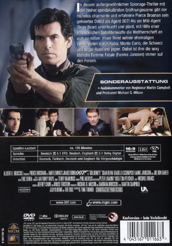 Der Film hat alles was man von einem guten Bond erwarten kann.Action vom feinsten,solide Special Effekts,gute Musik,überzeugende Darsteller(Sean Bean als perfekter Bösewicht) und einige witzige Momente.