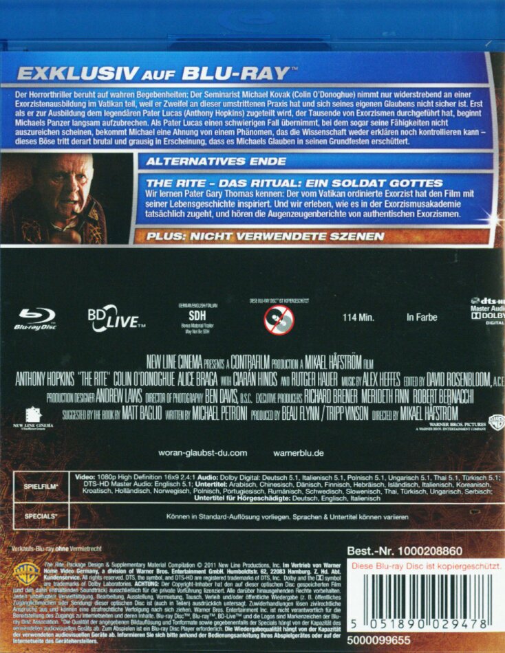 Schlussendlich ist The Rite nicht der grosse Knaller (trotz A. Hopkins), aber auf alle Fälle sehenswert und kein Fehlkauf. Besser als einige der anderen Exorzismusfilme! -