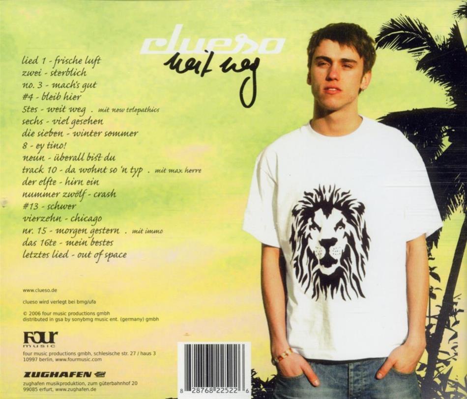 ab und zu schafft es auch ein deutscher künstler in meine cd-sammlung. von diesem hier hab ich aber absolut keine ahnung, aber die musik und die texte bringen mich zum schmunzeln, zum träumen, und reflektieren. clueso - ich mag dich