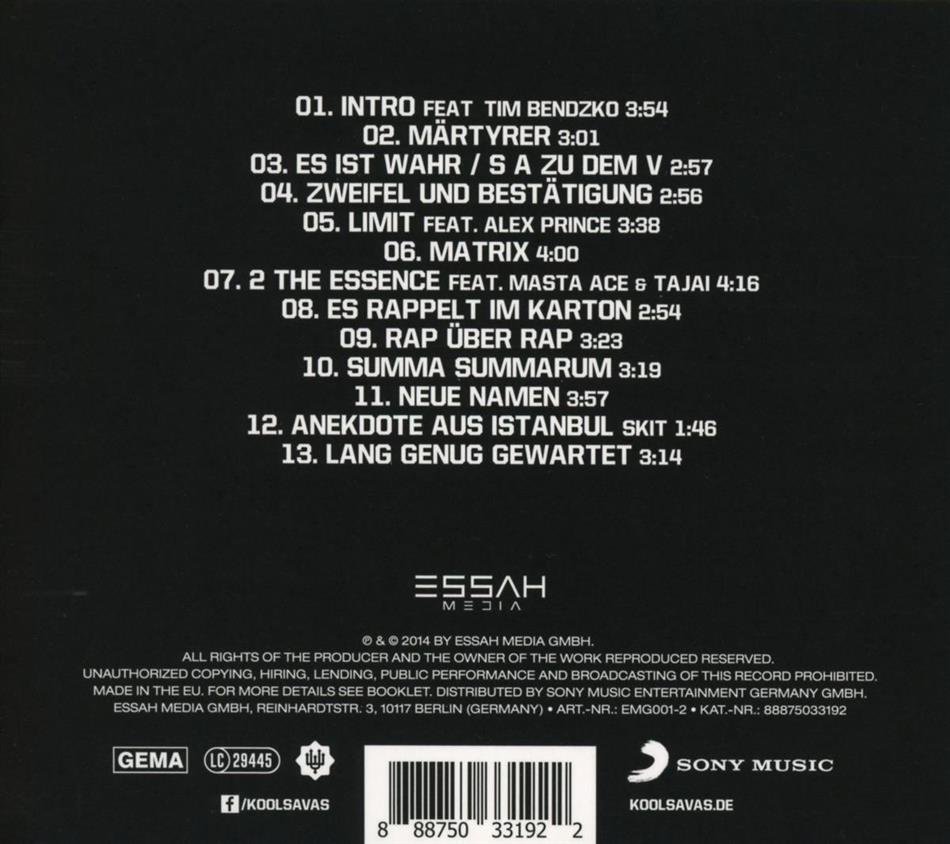 Nach zwei Nummer-1-Alben in Folge, mehreren ausverkauften Tourneen sowie Gold- und Platinauszeichnungen zeigt Kool Savas nun allen Hatern und Fans, dass er dem restlichen Game nach wie vor Lichtjahre voraus ist: Märtyrer ist schlicht und ergreifend ein Brett von einem Album. Kein Image-Firlefanz, kein gefälliger Tralala-Pop, kein Bullshit hier geht es um Rap in seiner reinsten und spannendsten Form.