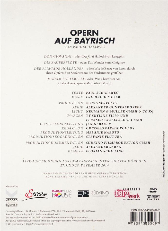 Mit den Mozart-Opern -Die Zauberflöte- und -Don Giovanni-, der Wagner-Oper -Der fliegende Holländer- und der Zugabe -Madame Butterfly- von Giacomo Puccini sind nun drei der erfolgreichsten -Opern auf Bayrisch- aus dem altehrwürdigen Prinzregententheater in München erstmals auf DVD zu erleben.