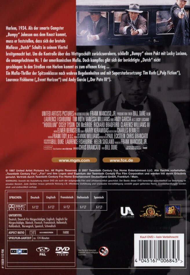 Der Film ist eigentlich ganz in ordnung, Er zeigt Harlem in den 20er Jahren als der Mob um Lucky Lucciano und Meyer Lanksi (Murder INC.) Die New Yorker Unterwelt regierten, nur komisch ich habe noch nie etwas von Schwarzen Mafiosis in dieser Zeit gehört? Lucky Lucciano spilet die Rolle des Lucky Lucciano ganz gut auch ein Lob an Laurence Fishburne