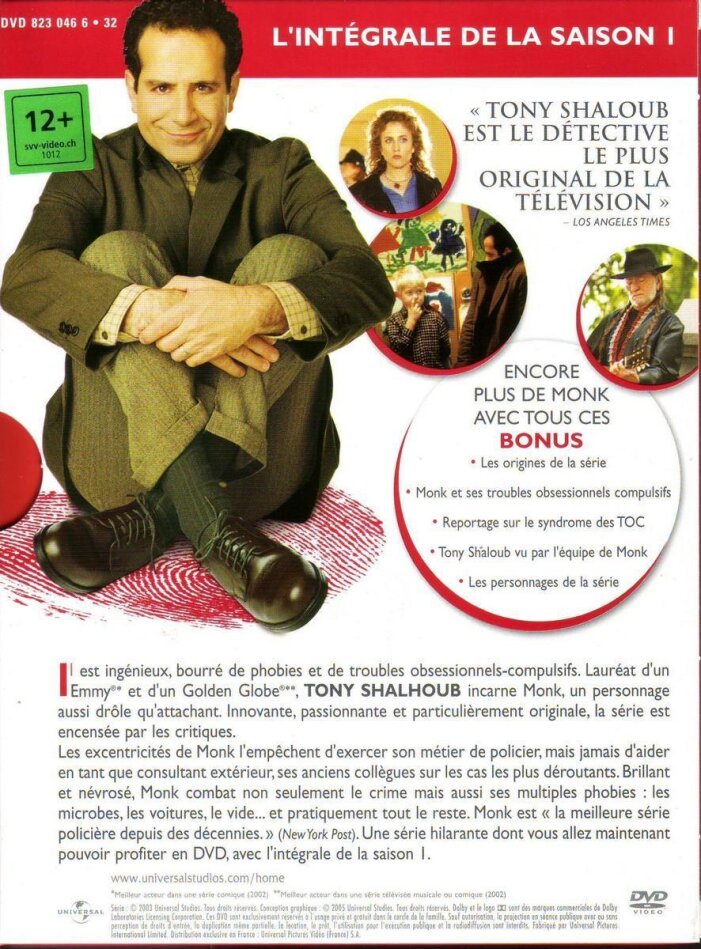 Superbe série américaine qui raconte les enquêtes d'un inspecteur atteint de tocs, ce qui rend le personne attachant et drôle. Après Columbo voici un autre inspecteur qui rendra la série Monk culte.